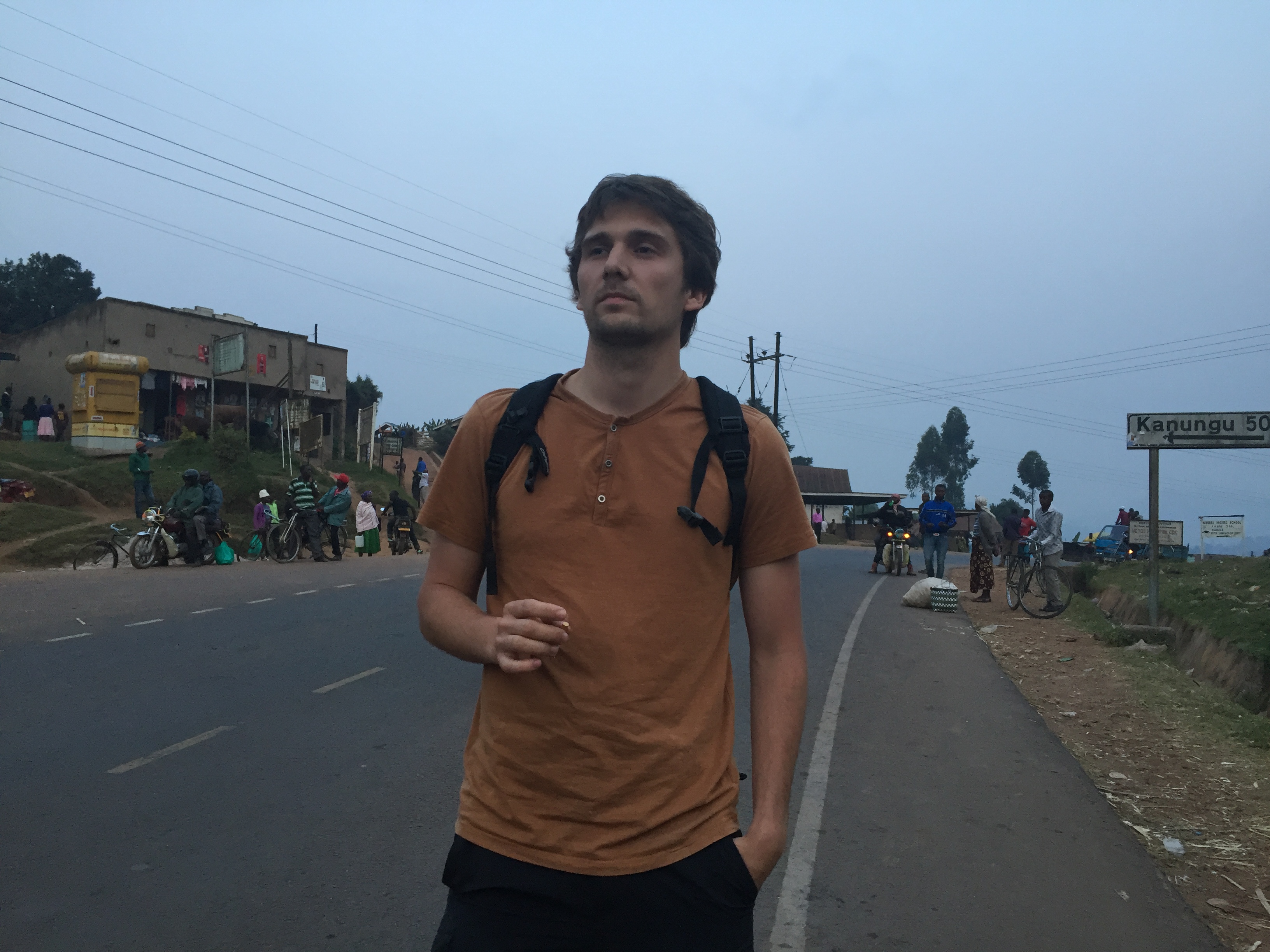 Droga z Parku Kibale do Bwindi miała zająć nam 6 godzin. Zajęła 11. Jechaliśmy przez las deszczowy, przez oderwane od świata plantacje bananów, sawannę, znowu przez las deszczowy, a na końcu chcąc nie chcąc zatrzymaliśmy się w mieście, które uświadomiło nam, że jeszcze mało w życiu widzieliśmy. A widzieliśmy już przecież trochę. Położone w miejscu gdzie główna droga z Kongo i Ruandy, prowadząca wprost do Kampali, łączy się z boczną drogą, oplatającą cały Narodowy Park Bwindi. Miasto – tragedia. Wysiadamy na skrzyżowaniu, będącym jednocześnie centrum tego miasta i od razu obiega nas tłum ludzi. Nie wiadomo po co. Nie żebrają, nie podejmują rozmowy, szepczą tylko „Muzungu”. I tyle. Nawet się nikt nie uśmiecha. Stoją tak obdarci, ten w za dużej marynarce i sandałach, tamten w dziurawym płaszczu i gumowcach, czyli generalnie w tym co udało im się znaleźć, a co daje trochę ciepła w tym wilgotnym i górzystym terenie. Poszedłem po papierosy, które w takich wypadkach nigdy nie zawodzą. Zawsze to lepiej palić i coś robić niż nie robić zupełnie nic. W sklepie zaczepia mnie chłopak, swoją drogą na wpół chyba niewidomy, że mi te papierosy kupi. Mówię, że sobie poradzę i idę do drugiego sklepu. Ten za mną. Wchodzę do środka a tam za żelazną kratą, w ciemności i przy jednej świeczce siedzi pani właściciel. Z tym, że właściciel niewiadomo czego, bo na półkach nie ma praktycznie nic. Na moje szczęście, albo i nie, były papierosy „sportsman”. Płace, wychodzimy, a ten chłopak z dziwnymi oczami idzie za mną. Asia pyta kierowcy, czy może zrobić zdjęcie. Kierowca odpowiada, że absolutnie nie bo ludzie tu nie są zbyt mili. Stoimy przy samochodzie, palę papierosa, a w kieszeni klasycznie mam nóż. Chłopak na mnie patrzy z ukosa. W końcu nie wytrzymałem i pytam czego właściwie chce. Ten cisza. Pytam chcesz papierosa? Kiwnął głową. Wziął dwie fajki i sobie poszedł. Pół godziny za mną chodził, ale bał się zapytać o dwa papierosy. W mieście huk motorów, na ulicy zbiera się coraz więcej ludzi i coraz więcej osób zaczyna nam się przyglądać. W końcu pojawia się osoba na która czekaliśmy w tym miejscu ponad godzinę – gość z papierem toaletowym i grzybami na obiad.
